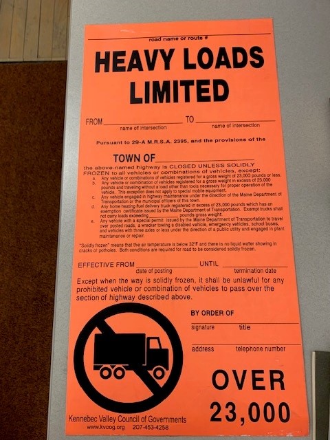 The Public Works Department has posted the roads – please see the sign that looks like this on roads that have weight limits.